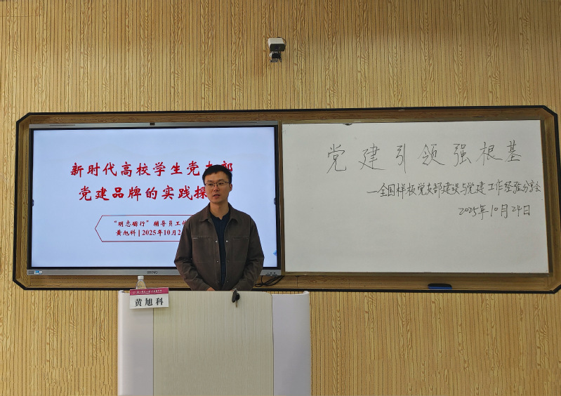 会上,黄旭科老师结合自身指导的党支部获“全国党建工作样板支部”实践经验,以“新时代高校学生党支部党建品牌的实践探索”为题展开分享。内容围绕党支部品牌化建设展开,既阐述高校学生党支部在育人质量提升、学生全面发展中的关键意义,也指出部分支部存在的定位模糊、专业特色不彰、传播力不足等问题,并系统讲解强化政治引领、发挥党员示范效应、促进支部联动共建、培育志愿服务品牌、扎根地方服务乡村教育振兴五大建设路径。