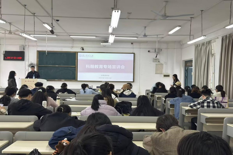 近日,外国语学院在雁山校区文科楼一区302教室举办科翰教育专场招聘会,近80名2026届毕业生参与。