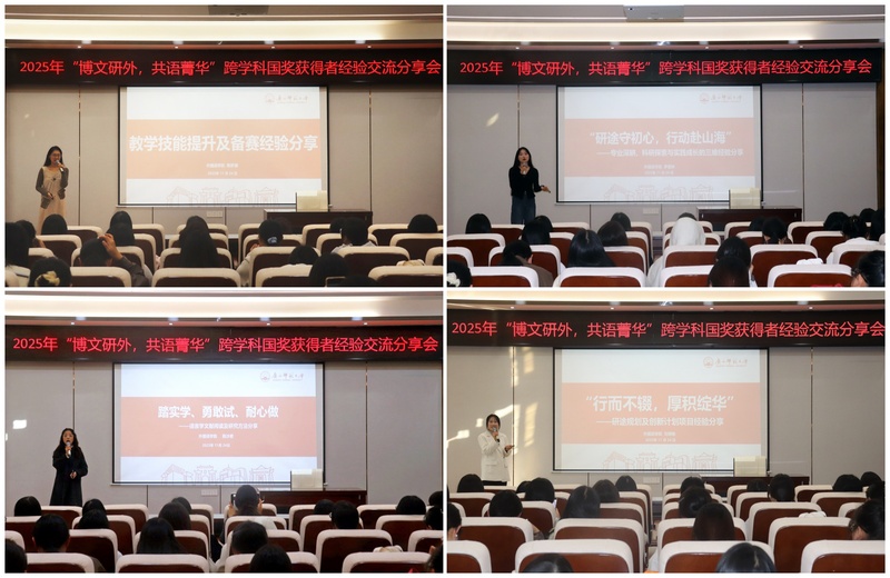 11月24日,外国语学院联合文学院/新闻与传播学院举办“博文研外·共语菁华”研究生跨学科国奖经验交流会。外国语学院党委副书记赵萌萌、两院研究生专职辅导员及研究生代表300余人参与。