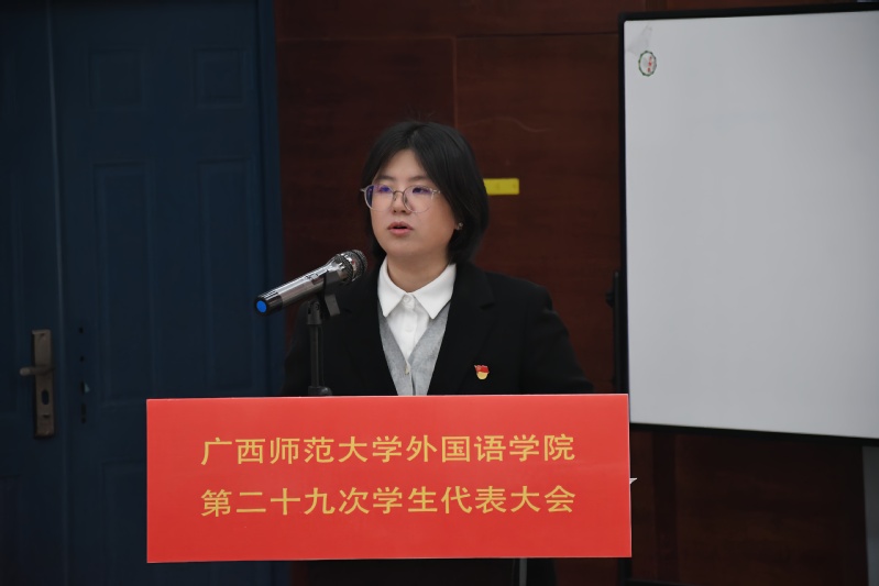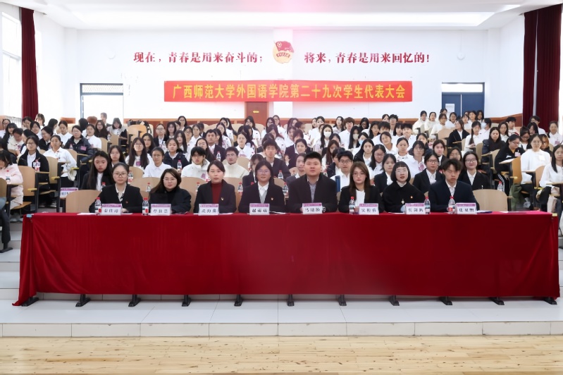 12月6日,外国语学院第二十九次学生代表大会在雁山校区大学生学术报告厅219教室举行,外国语学院党委副书记赵萌萌、团委书记马培桢出席大会,各年级辅导员、校学生会、各兄弟学院学生会代表160余人参加。
