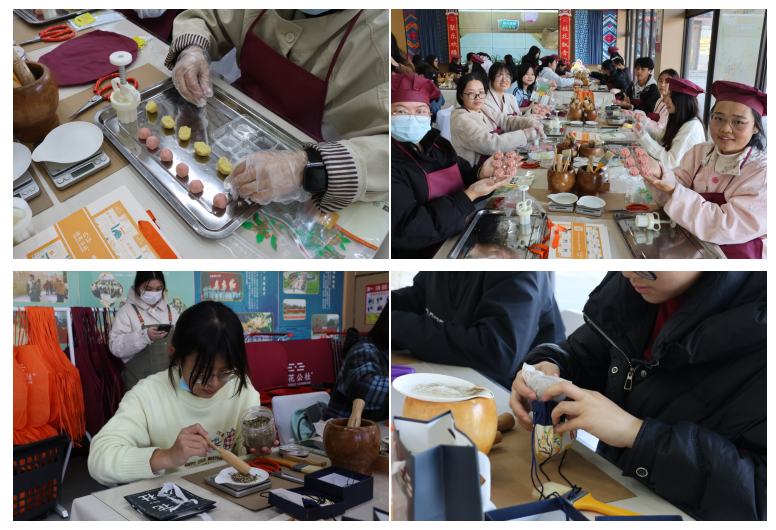 活动以“实地观摩+理论讲解+实践体验”的方式进行。同学们在桂花文化体验馆参观学习桂花文化的历史脉络、民俗内涵及产业发展历程,于沉浸式学习中厚植文化自信,强化文化传承意识。实践体验环节,同学们在动手实践中体悟团队协作价值,培养责任担当与互助品质。
