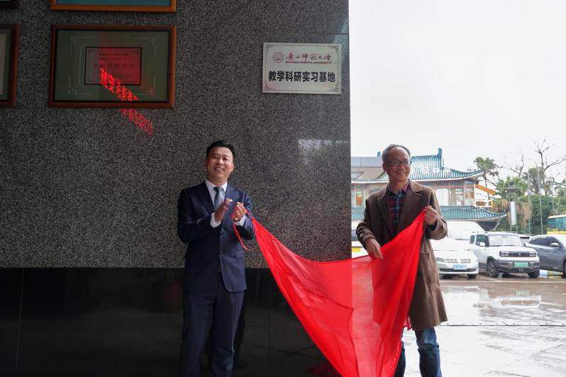 在与会嘉宾的见证下,双方签署了《广西师范大学教学科研实习基地协议书》,并共同为“广西师范大学教学科研实习基地”揭牌。根据协议,双方将在人才培养、实习实训、科研合作等方面深化合作,共同探索产教融合新模式。
