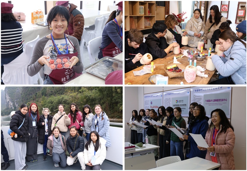在为期六天的研学过程中,在我校师生和志愿者的陪同下,营员们参与了多项丰富多彩的语言文化课程与实地参访。他们通过“云游桂林”实景课堂学习中文;走进广西师范大学附属外国语学校与中国中学生交流互动;在中华才艺课上体验中国民族舞蹈;赴靖江王府、象鼻山、东西巷等地感受桂林的历史脉络;走进桂花公社亲手制作桂花糕,探访东漓古村体验非遗文化;前往阳朔乘船游览漓江精华段,领略“桂林山水甲天下”的自然画卷。活动期间,营员们还学唱广西山歌,在互动中进一步加深对广西民族风情和多民族和谐发展的认知。