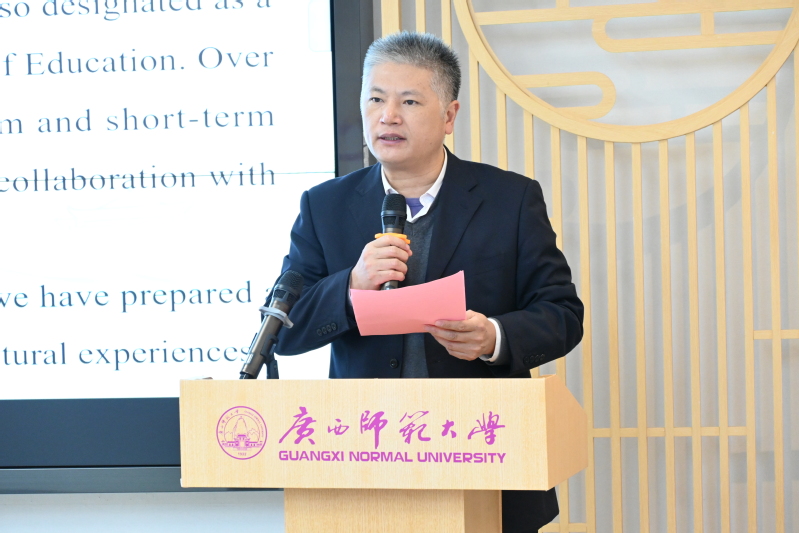 12月30日上午,2025年“汉语桥”美国青少年冬令营在育才校区正式开营。国际文化教育学院党委书记杨峰、外国语学院副院长刘明录、美国领队任靖及全体营员、志愿者等参加开营仪式。杨峰书记在致辞中向远道而来的美国师生表示热烈欢迎,并希望同学们通过本次冬令营加深对中国文化的理解,成为中美文化交流的使者。任靖老师在致辞中对广西师范大学的精心组织与热情接待表示衷心感谢,并寄语全体营员珍惜机会、积极交流、收获成长。