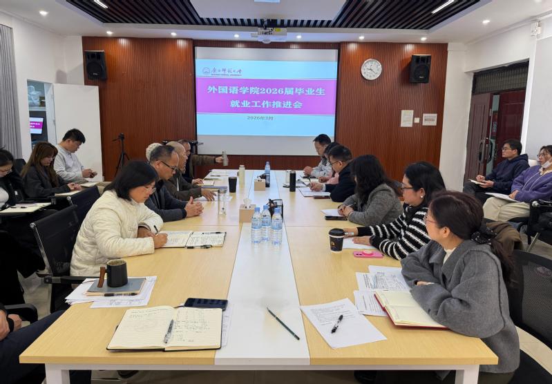 3月16日,外国语学院召开2026届毕业生就业工作推进会。学院党政领导班子、各学科负责人、系主任、教师代表及全体专职辅导员参加会议,共同研判就业形势,部署下一阶段重点工作。