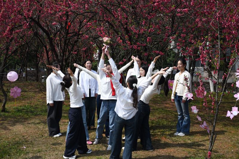 风起雁栖湖畔,绿生桃李枝头,3月13日下午,广西师范大学外国语学院在雁山校区行政南楼前桃花林举办“桃夭诗韵·声动雁栖”外文诗歌诵读会。