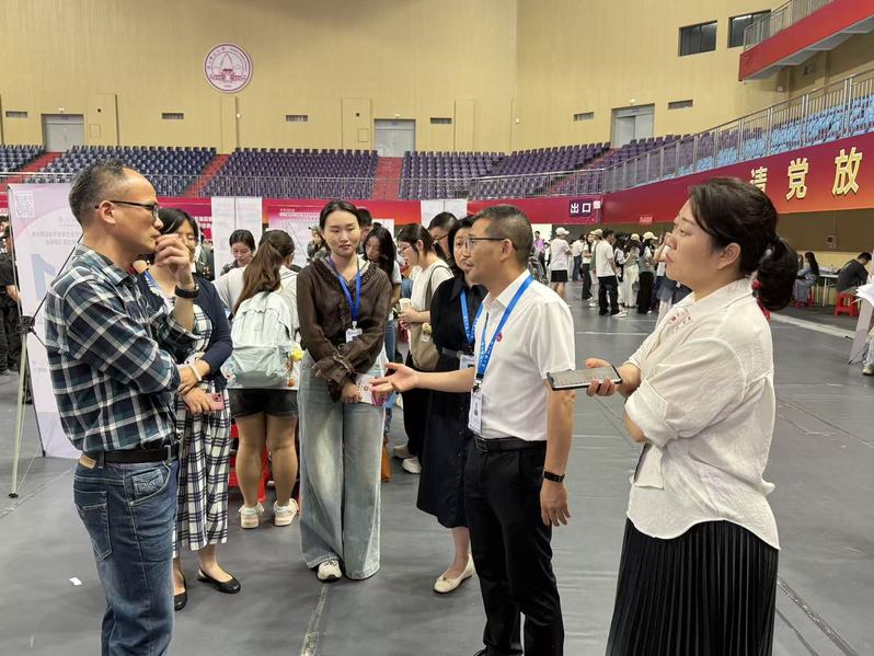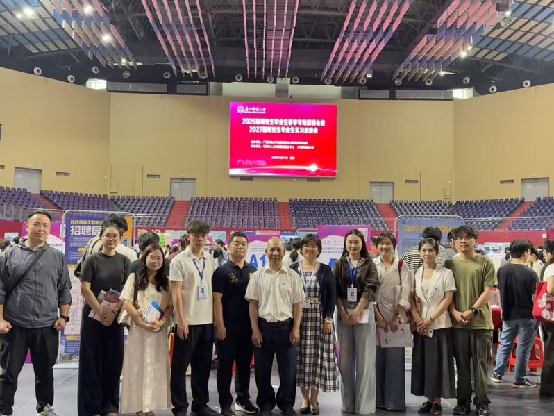 为深入落实学校关于推动毕业生高质量就业的工作要求,牢牢把握就业工作关键节点,4月11日,广西师范大学外国语学院党委书记江飞、院长何彦诚、副书记赵萌萌率队赴学校2026届研究生春季招聘会暨2027届研究生实习洽谈会现场,开展“访企拓岗促就业”专项行动。期间,团队与湛江市霞山区教育局、宁波酶赛生物工程有限公司、贺州学院等10余家对口用人单位开展深度交流,切实为2026届、2027届毕业生搭建优质的就业与实习对接平台。
