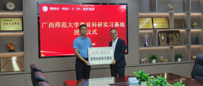9月24日,广西师范大学外国语学院学院院长何彦诚率队赴柳州市民族高中、柳州市第十三中学举行教学科研实习基地签约暨授牌仪式。