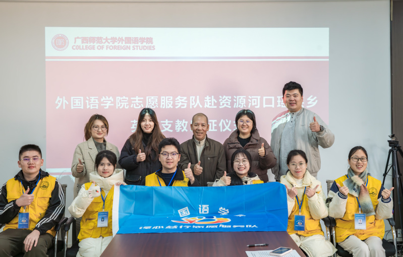为充分发挥外国语学院专业优势,助力乡村教育发展,展现青年学子的责任与担当,1月12日,外国语学院组织“译心益行”志愿服务队赴资源县河口瑶族乡河口完小支教活动出征仪式于广西师范大学育才校区文科楼308会议室举行。外国语学院党委书记江飞、副书记赵萌萌、团委书记马培桢、支教队指导老师及全体志愿者参加。