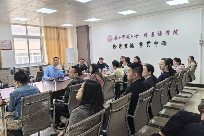 近日,外国语学院在育才校区第二文科楼308会议室举行2026年国家社科基金申报辅导会。会议邀请广西大学外国语学院副院长、博士生导师彭程教授为我院教师做题为“国家社科基金申报辅导会——以外语学科为中心”的专题辅导。