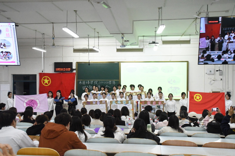 为扎实推进新时代全面从严治团工作落地,展示团支部年度建设成效、搭建互学共进桥梁,持续提升团支部的组织向心力与青年行动力,2025年11月17日,外国语学院在雁山校区文科楼四区305教室举行2024-2025学年团支部考评大会。学院党委副书记赵萌萌、团委书记马培桢,学院辅导员代表、校团委和兄弟学院团学代表及各团支部骨干成员200余人齐聚现场盛宴。