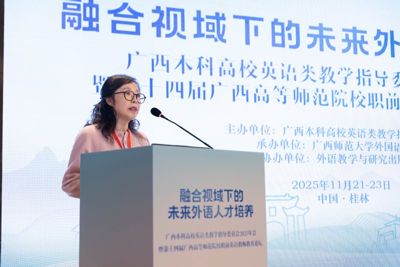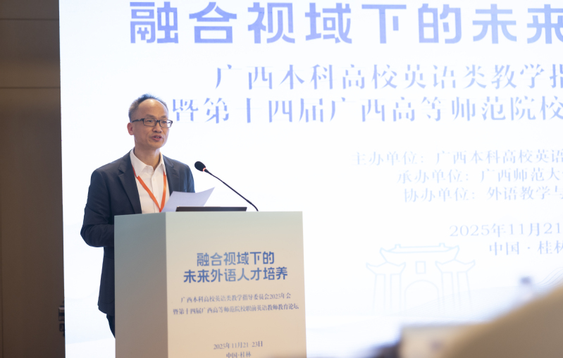 11月21日-23日,由广西本科高校英语类教学指导委员会主办,我院承办的广西本科高校英语类教学指导委员会2025年会暨第十四届广西高等师范院校职前英语教师教育论坛在桂林举办。来自全区37所本科高校外语院系负责人及骨干教师近100人参加会议。