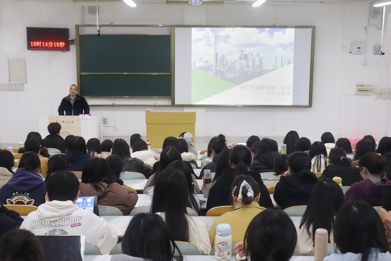 12月4日,外国语学院副院长刘明录教授以“研究生课题申报、论文写作与发表”为题开展研究生科研能力提升系列讲座。本次讲座由张双鹏老师主持,学院2025级硕士研究生220余人参加。